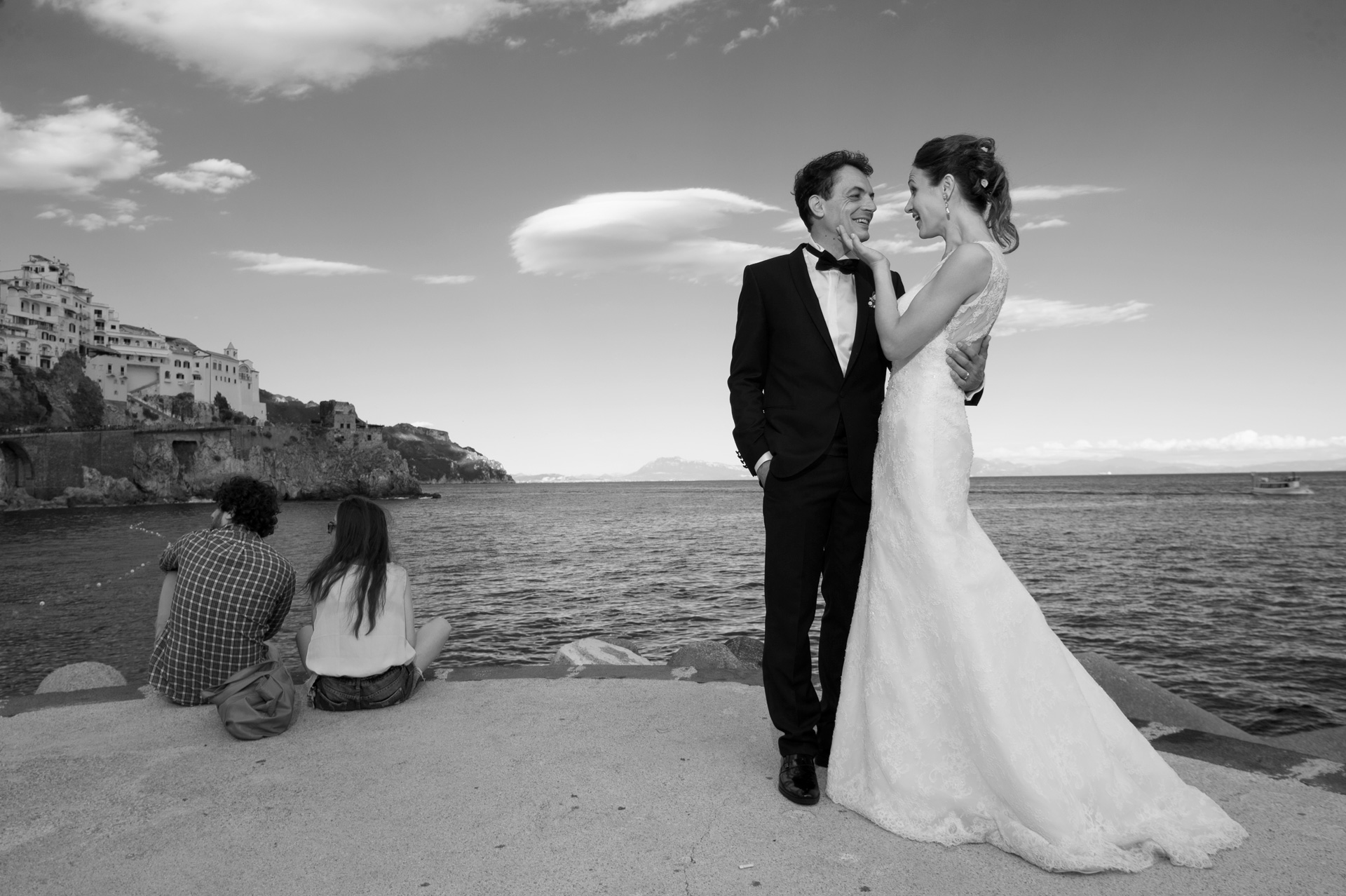 Elia and Francesco, their elegance and naturalness make even more magical the nuances of a curled sea, accompanied by a sky full of passion, and a Byzantine style landscape in their most beautiful day! all this took place in the magnificent setting of Amalfi and the small neighbouring villages with the collaboration of the wedding planner Ramona Avitabile.